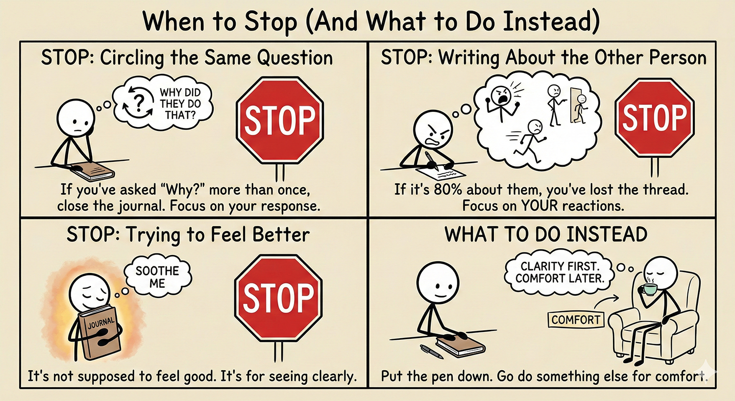 If you’re writing to soothe yourself, put the pen down and go do something else.